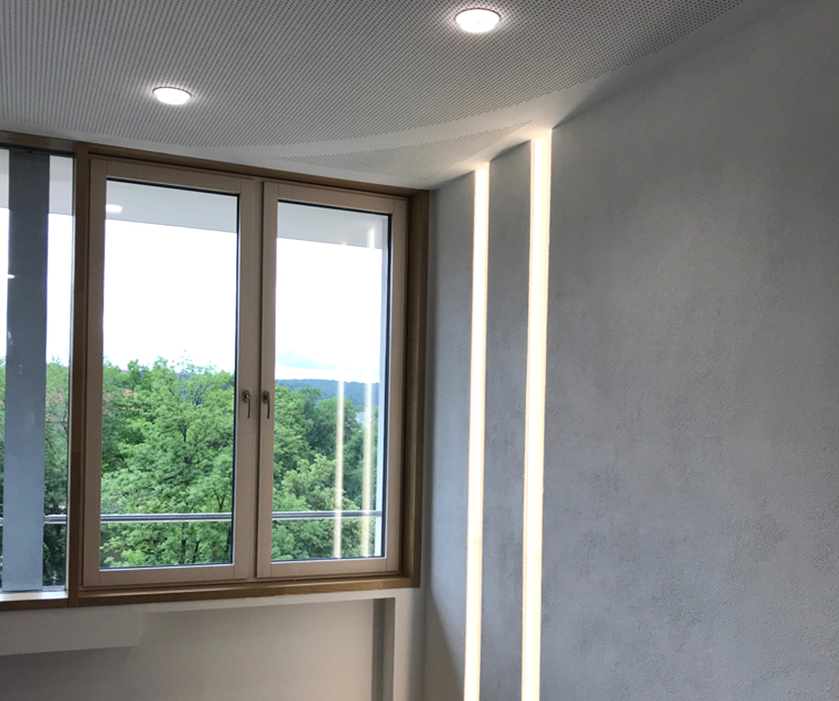Foyer Beleuchtung über Castaldi Strahler, Wendeltreppenanlage mit NauticProfil System, Lichtplanung: Mayer Lighting, Tübingen | Elektroplanung: Joachim Rieder, Ingenieurbüro Grammer, Rottenburg.