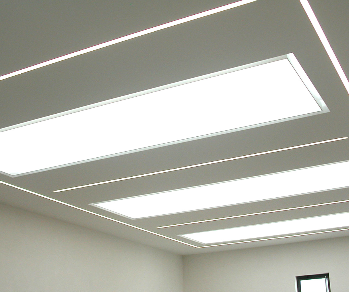 Rahmenlose und deckenbündige Lichtkanäle im Carre angeordnet