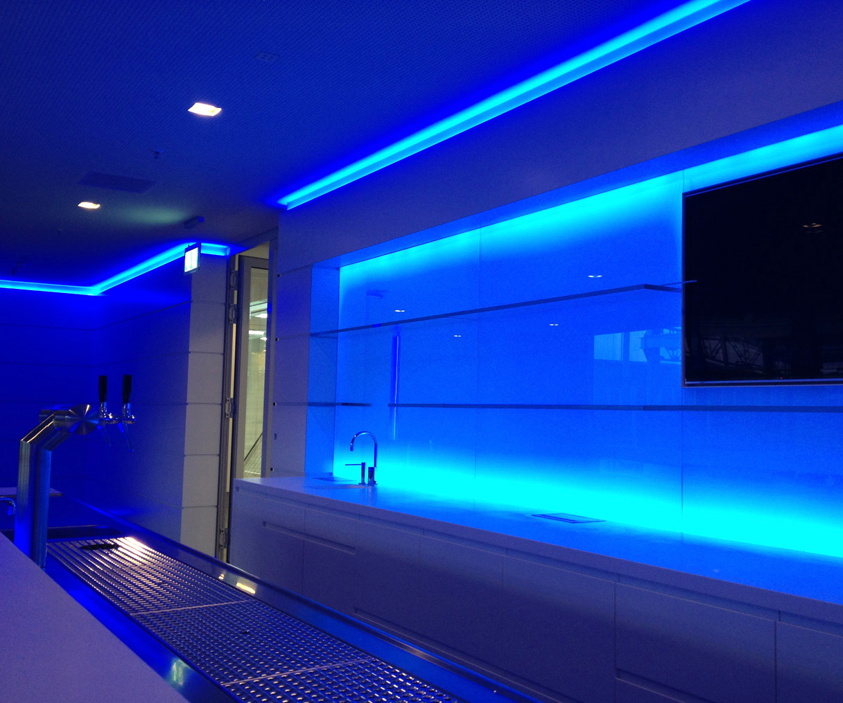 Das alte Werksgelände von Dr. Viessmann wurde zu einem Privatdomizil umgebaut. Die Hallen wurden für Ausstellungszwecke mit Lichtkanälen und Sonderleuchten versehen. Der Bewirtungsbereich wurde mit indirekten blauen Leuchtkanälen beleuchtet.