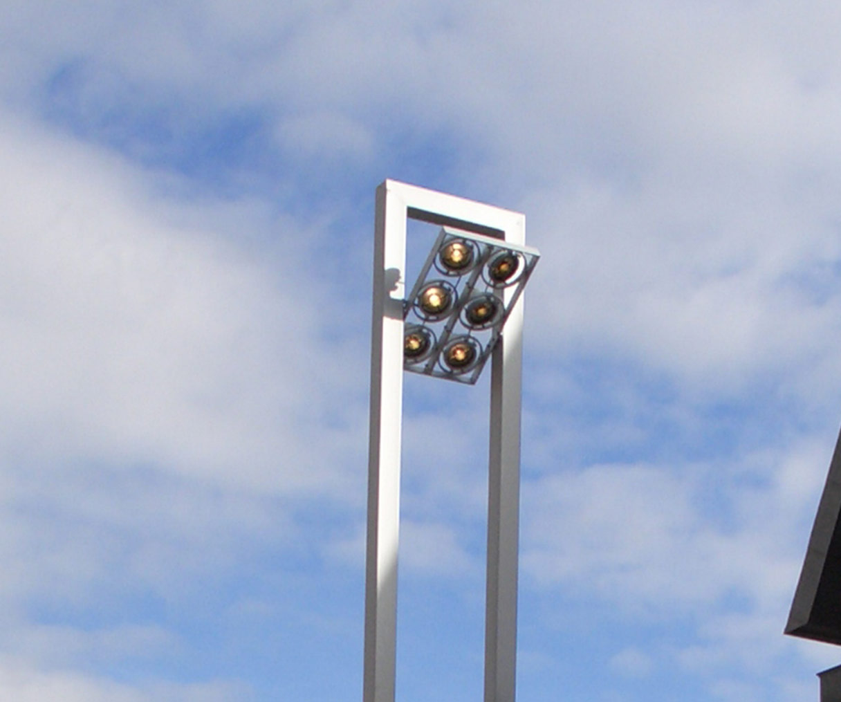 In einem schlanken Masten aus Vierkant-Stahlrohr sitzen kardanisch gelagerte Sill Projektorscheinwerfer. Jede Leuchte lässt sich individuell einstellen und ermöglicht so größtmögliche Flexibilität bei der Lösung der Beleuchtungsaufgabe. Je nach Nutzung des Platzes können Stufenanlagen, Skulpturen oder Wasserspiele zusätzlich beleuchtet werden.