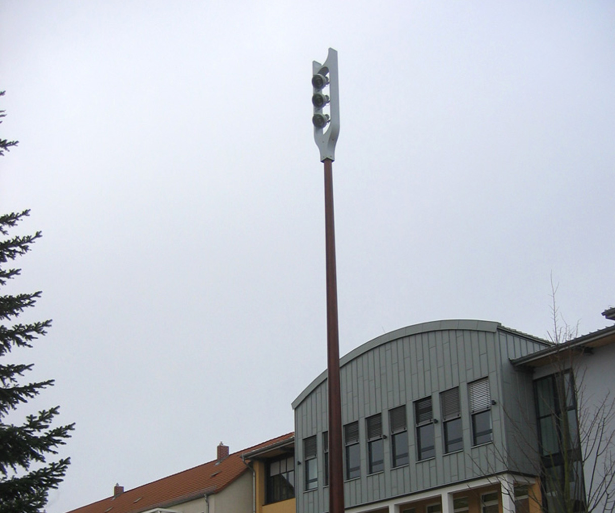 Beleuchtung des Marktplatzes durch vier dekorativen Holzmasten mit kundenspezifischer Aufnahmevorrichtung für drei Sill - Parabolstrahler der Serie 021