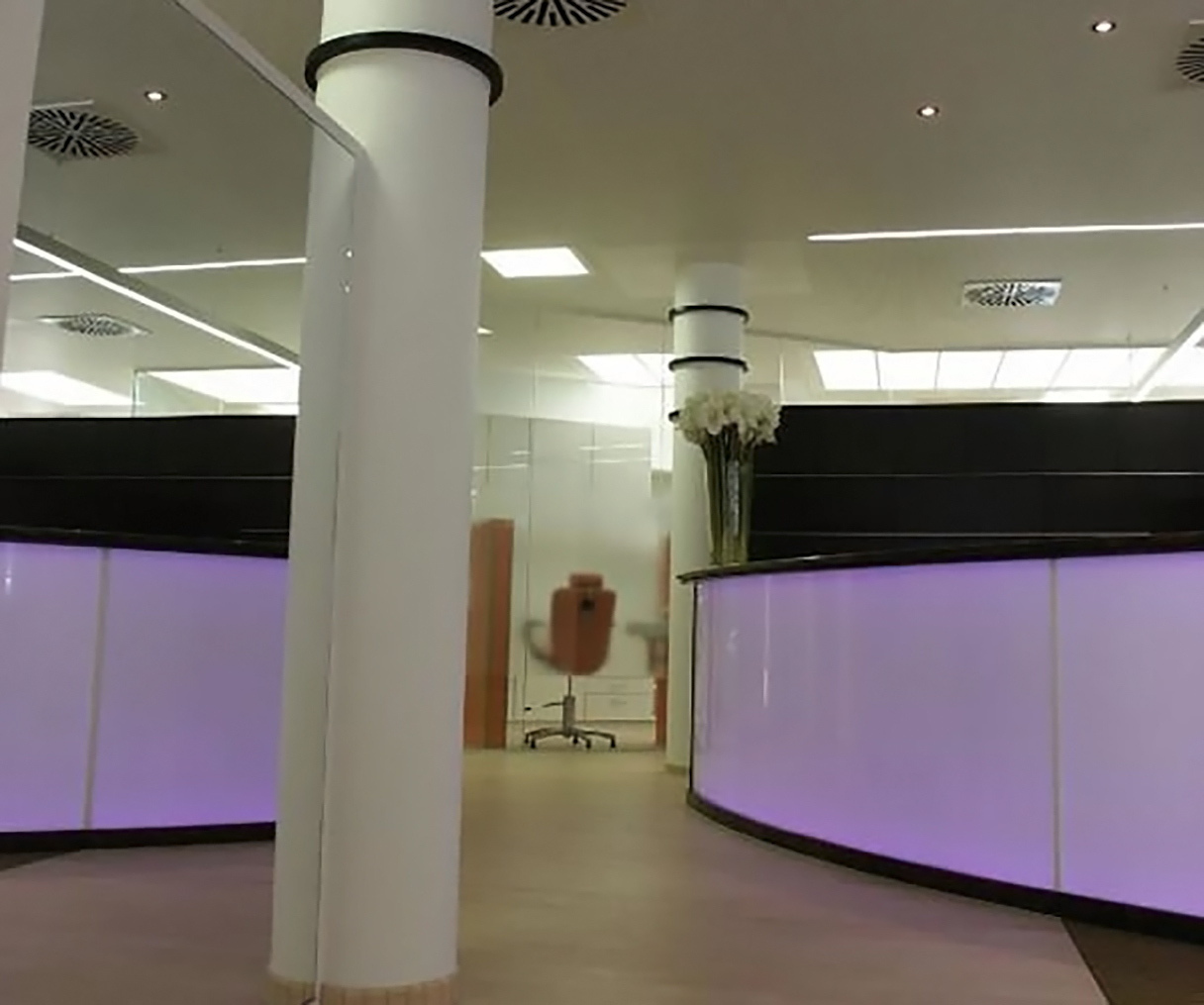 Glaslichtwand farbig mit LED Profilen hinterleuchtet