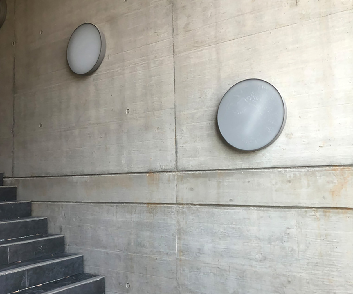 Im an die Schule angrenzenden Ergänzungsbau, sorgen direkt und indirekt strahlende Pendelleuchten in den Klassenzimmern, und unterschiedlich große Rundleuchten in den Treppenhäuser und Fluren sowie der Mensa für angenehme Lichtverhältnisse. E-Planung: Ingenieurbüro Kurz und Fischer