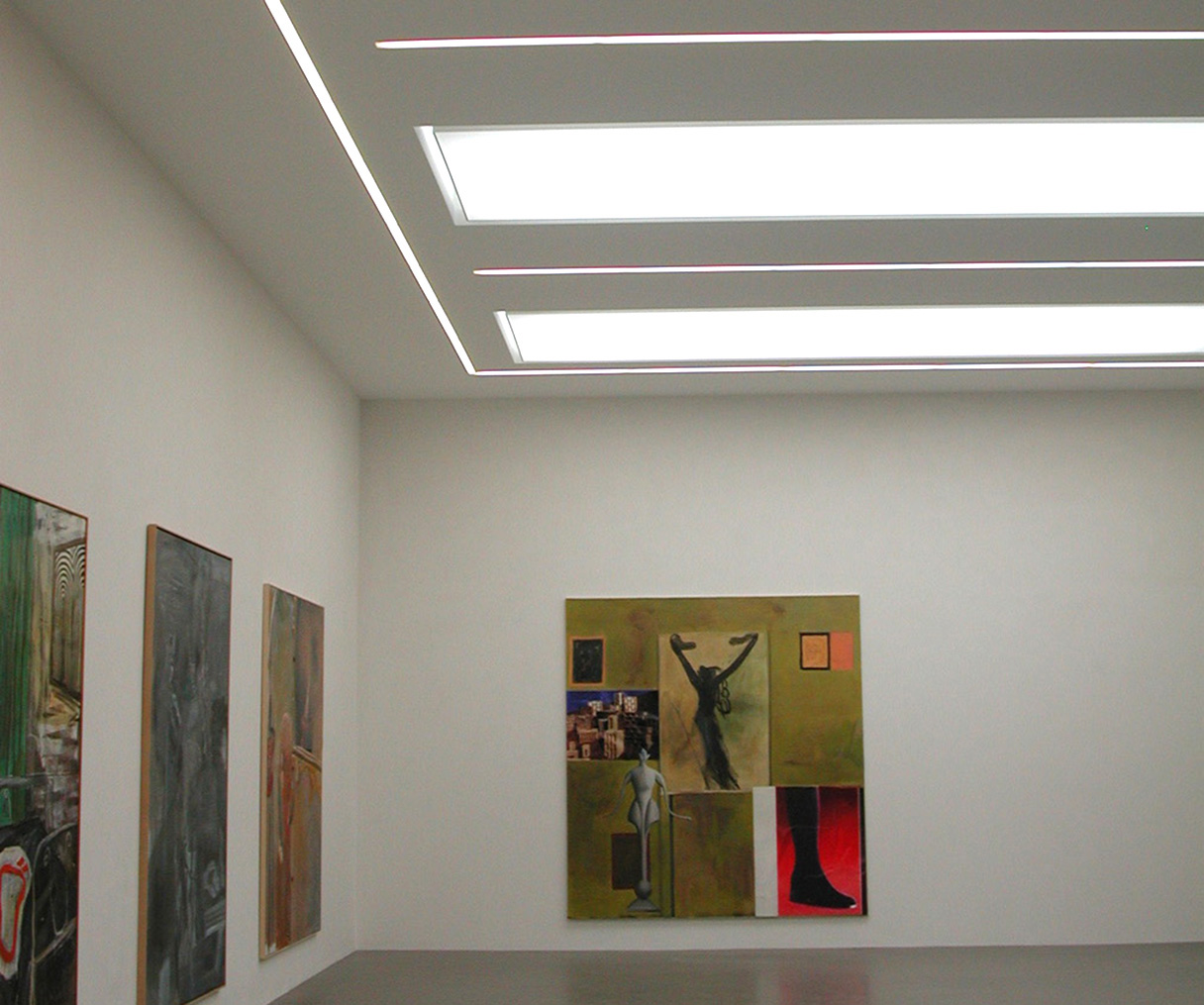 Rahmenlose und deckenbündige Lichtkanäle im Carre angeordnet