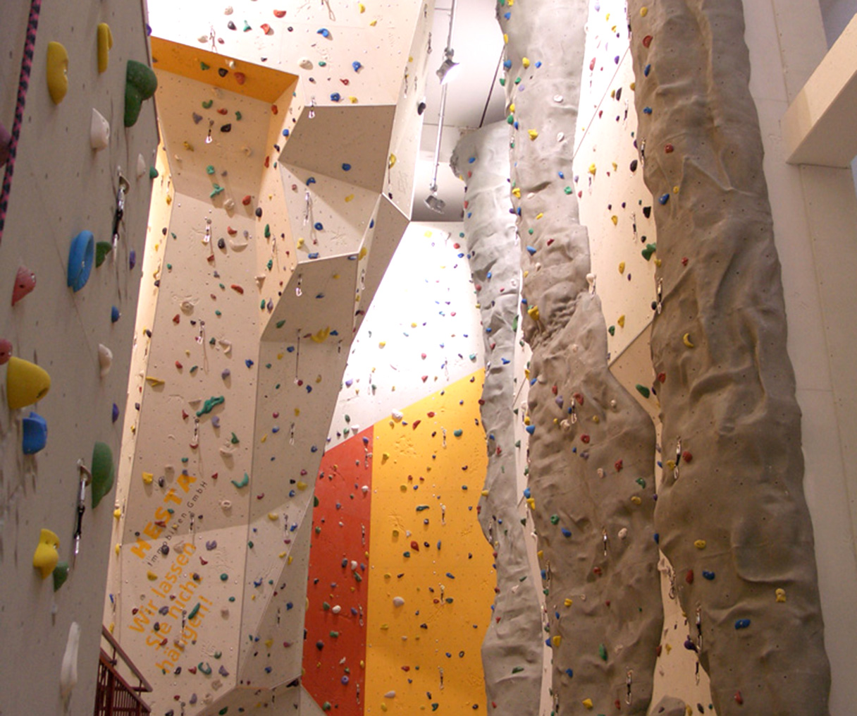Ausleuchtung der Kletterhalle mit Hochleistungsstrahlern, die durch individuelle Anordnung beim Klettern nicht blenden.